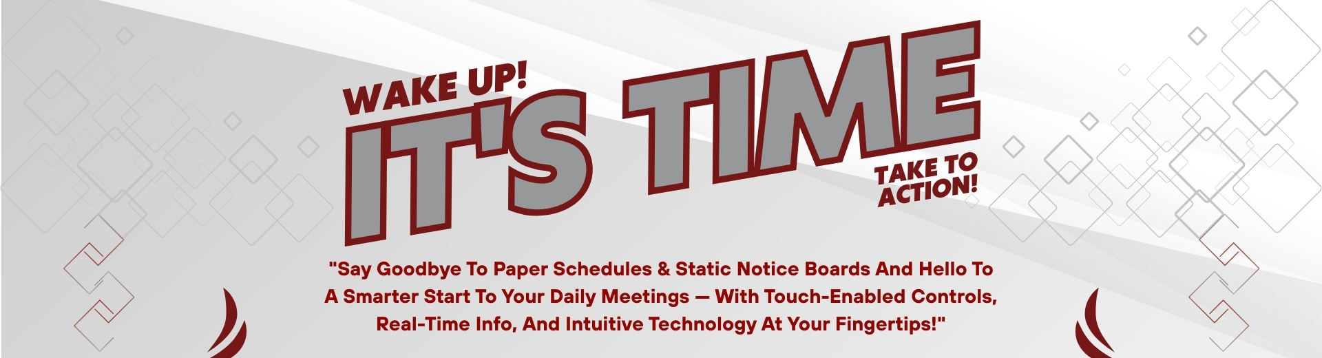 Say Goodbye To Paper Schedules & Static Notice Boards And Hello To A Smarter Start To Your Daily Meetings — With Touch-Enabled Controls, Real-Time Info, And Intuitive Technology At Your Fingertips!